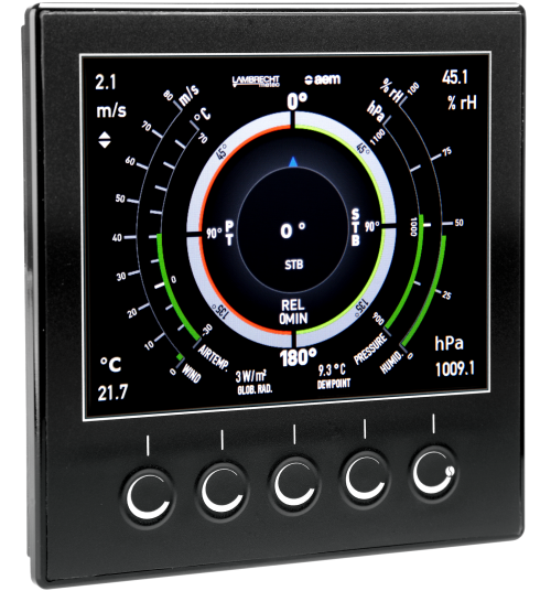Das Meteo-LCD[pro] ist das vielseitige Multitalent für den Einsatz auf hoher See. Es erfüllt höchste Prüfnormen, ist flexibel, kompakt und nahtlos in bewährte LAMBRECHT-Systemlösungen integriert – inklusive Ser[LOG] Datenlogger und verschiedener Sensoren. Das hochauflösende 5,7-Zoll-Farbdisplay mit weitem Ablesewinkel bietet eine klare Darstellung von bis zu sieben Parametern gleichzeitig, darunter Windrichtung, Windgeschwindigkeit und Luftfeuchtigkeit nach WMO-Standard. Das elegante Design verbindet moderne Technik mit intuitiver Bedienung – für ein erstklassiges Nutzererlebnis mit hoher Sicherheit sowie maximale Effizienz bei maritimen Einsätzen.